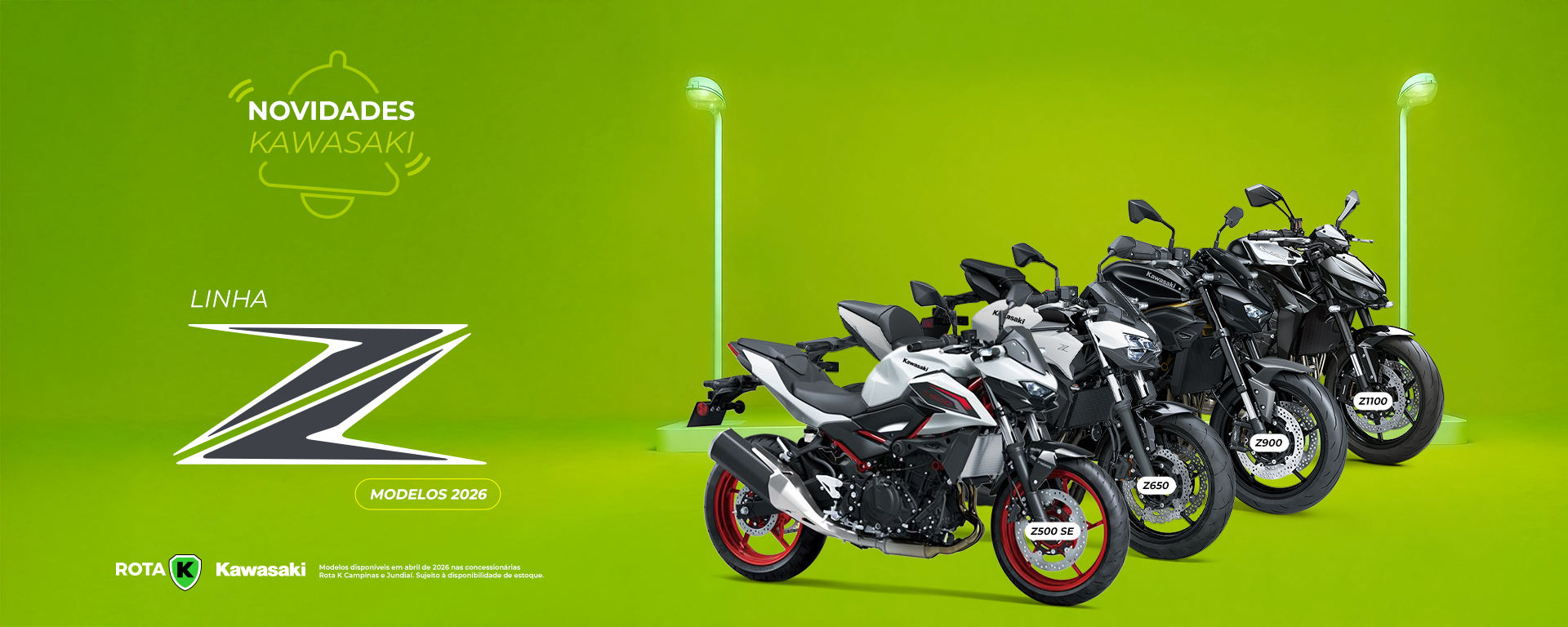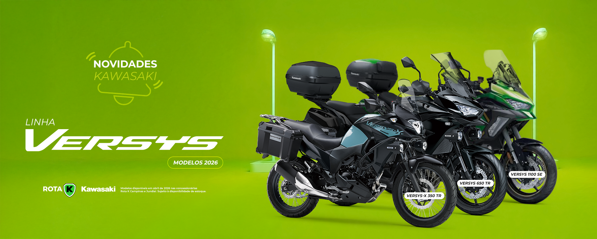 São mais de 8 modelos disponíveis pra você experimentar a Kawasaki dos seus sonhos pilotando!